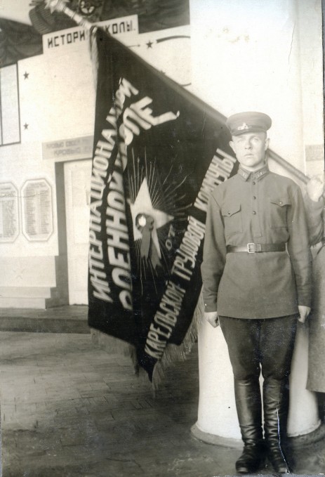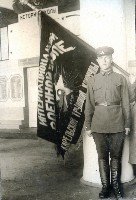 Фотография курсанта у развёрнутого знамени Интернациональной военной школы